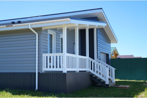 - При использовании покрытия Colority® Print, «ЭкоБрус GL» достигает максимального сходства с клееным брусом. Надежное скрытое сцепление панелей придает фасаду здания естественный вид.