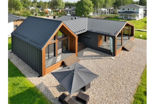 Кликфальц® — актуальный, стильный и надежный кровельный и фасадный материал, который отлично сочетается с различными архитектурными стилями. Благодаря классике линий этот материал понравится даже самым консервативным личностям. Главная особенность этого материала – легкость монтажа. Листы крепятся к обрешетке саморезами через отверстия вдоль замочной части кровли без использования специального оборудования.