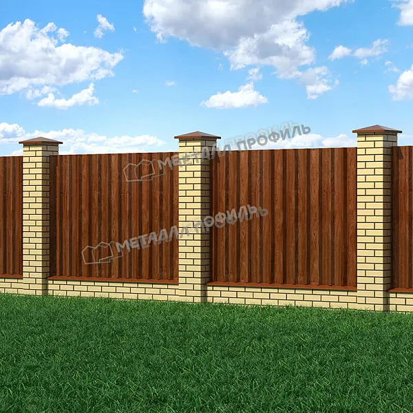 Профлист МЕТАЛЛ ПРОФИЛЬ МП-35x1035-B (ECOSTEEL_MA-01-МореныйДуб-0,5) — популярный материал для обустройства профилированного листа. Представляет собой стальной оцинкованный лист с покрытием. Толщина металла с цинковым и декоративно-защитным покрытием — 0.5 мм. После проката на специальном оборудовании сталь приобретает рисунок из повторяющихся волн. Жёсткость профилированного листа на порядок выше плоского.Профиль МП-35: