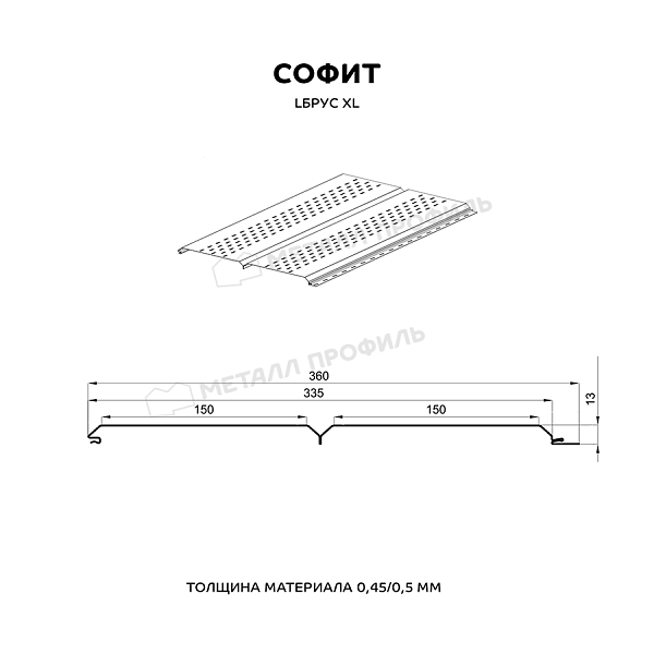 Описание товара: "Софит Металл Профиль перфор. Lбрус-XL-14х335 (ПЭ-01-1035-0.45)"