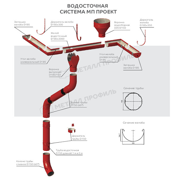 - Основа из стали не позволяет Труба водосточная МЕТАЛЛ ПРОФИЛЬ ПРОЕКТ D150х1000 Ral 3011 корродировать.