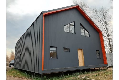 - В отличие от облицовки фасада деревом, металлический сайдинг Вертикаль прост в монтаже и не требует дополнительного послемонтажного ухода.
